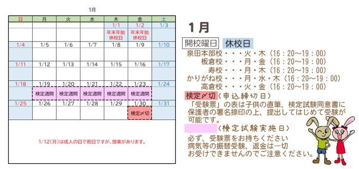 イケダそろばんクラブ:今月のスケジュール