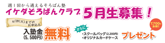 「イケダそろばんクラブ」は、「ひとり一人を大切に!」をキャッチコピーにしているから、1人でも多くの子どもたちにそろばんスキルを身に付けて欲しくて、「少人数制個別スタイル」「週1から始められる」そろばん指導を始めました。