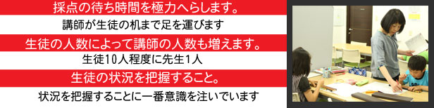 ※お子様の性格差・成長差・学習履歴差等により、他のそろばん塾よりも面倒見の良い、1:8〜1:10の個別指導でも、充分な指導成果がでない場合があります。通常クラスで入会したお子様でも、マンツーマン指導の方が成果が出そうなお子様にはベテランの本部スタッフよりマンツーマンクラスをおすすめしています。